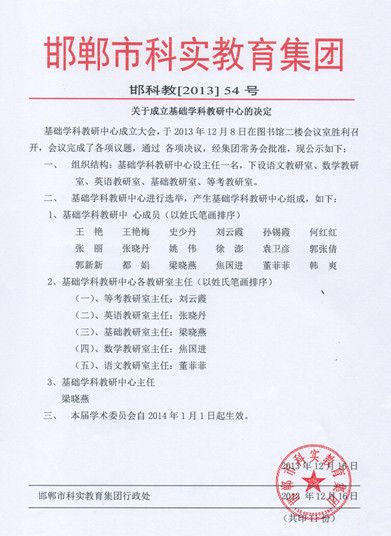 我?;A(chǔ)學(xué)科委員會(huì)成立2013年12月16日,其前身基礎(chǔ)學(xué)科教研中心。由教研室主任組成、設(shè)主任一名