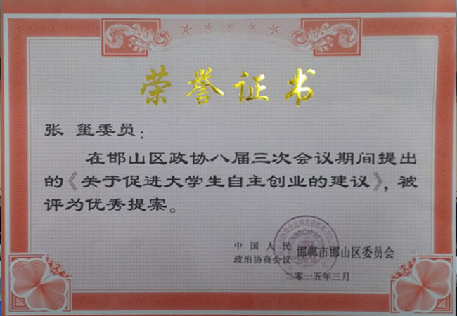 2015年3月,校長張璽參加了在金龍大酒店召開的邯山區(qū)政協(xié)八屆十六次常委會(huì)議,會(huì)議為期四天。本次會(huì)議,張校長以題為《關(guān)于大學(xué)生自主創(chuàng)業(yè)的建議》又一次獲得優(yōu)秀提案成果獎(jiǎng),本建議將為廣大學(xué)子自主創(chuàng)業(yè)提供了一個(gè)更加廣闊的平臺(tái)。(通訊員:張獻(xiàn)英)
