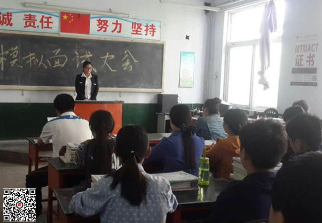 2015年4月27日上午,職業(yè)技術學院藝術系二年級學生模擬面試會在縣職教中心舉行。藝術系主任張勝和各專業(yè)學科帶頭人參加了會議。模擬面試大會由系主任主持,在各專業(yè)教師和學生的緊密配合下,學生們在模擬面試過程中,發(fā)揮出應有的水平,這次面試大會不僅讓大家了解企業(yè)招聘的過程,積累了面試經(jīng)驗,同時通過評委睿智的點評,明確認識到自己尚存的不足,在以后的學習和生活中有目的的培養(yǎng)自己的能力,完善自我。希望校園里能夠走出更多的杰出人才。