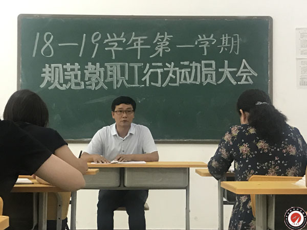 8月1日8:10,我校在實(shí)訓(xùn)樓3樓306教室召開18-19學(xué)年第一學(xué)期規(guī)范教職工行為動員大會,會議由校長張璽博士主持,全體教職工參加。