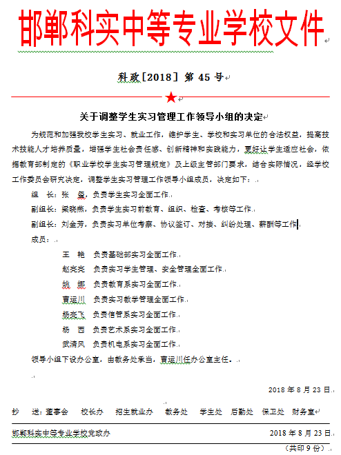 關(guān)于調(diào)整學(xué)生實(shí)習(xí)管理工作領(lǐng)導(dǎo)小組的決定