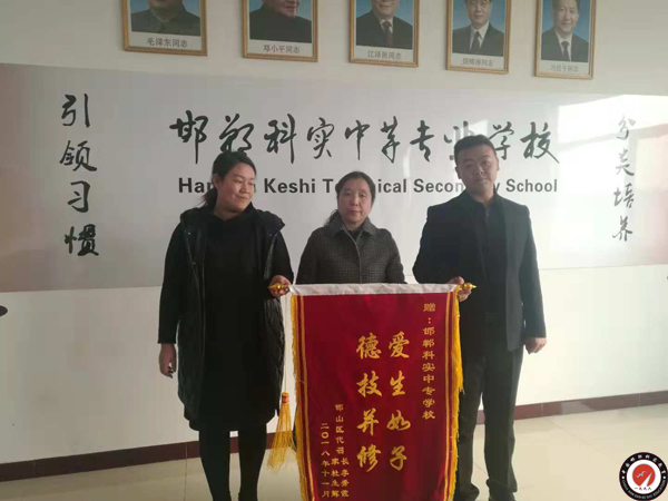 我校17級形象設(shè)計專業(yè)學(xué)生杜盼盼家長,到校呈上 “愛生如子 德技并修”的錦旗,表達對我校的領(lǐng)導(dǎo)及老師們對孩子辛勤教育、悉心照顧的敬意。梁校長親切的接待家長代表,并表示一定不負眾望,全力做好教育教學(xué),讓孩子們能學(xué)有所成,德技并修,引領(lǐng)著他們走上更加光明的人生大道。