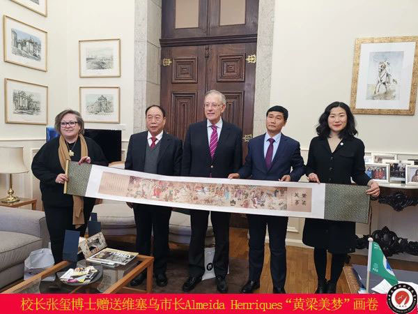 2019年1月10日—16日,為了積極響應(yīng)國家主席習(xí)近平倡導(dǎo)“一帶一路”號召,為學(xué)生提供更加廣闊發(fā)展舞臺,應(yīng)葡萄牙維塞烏理工學(xué)院校長Paiva教授的邀請,校長張璽博士、書記高志遠(yuǎn),訪問葡萄牙維塞烏理工學(xué)院洽談合作辦學(xué),在葡期間維塞烏市長Almeida Henriques先生,會見校長張璽博士一行,葡中經(jīng)貿(mào)促進(jìn)會舉辦歡迎晚宴歡迎校長張璽博士一行。