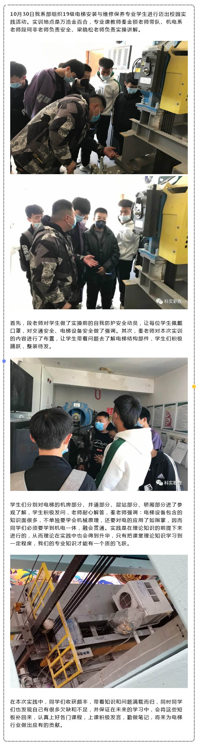 我校電梯安裝與維修保養(yǎng)專業(yè)組織校外實(shí)訓(xùn)