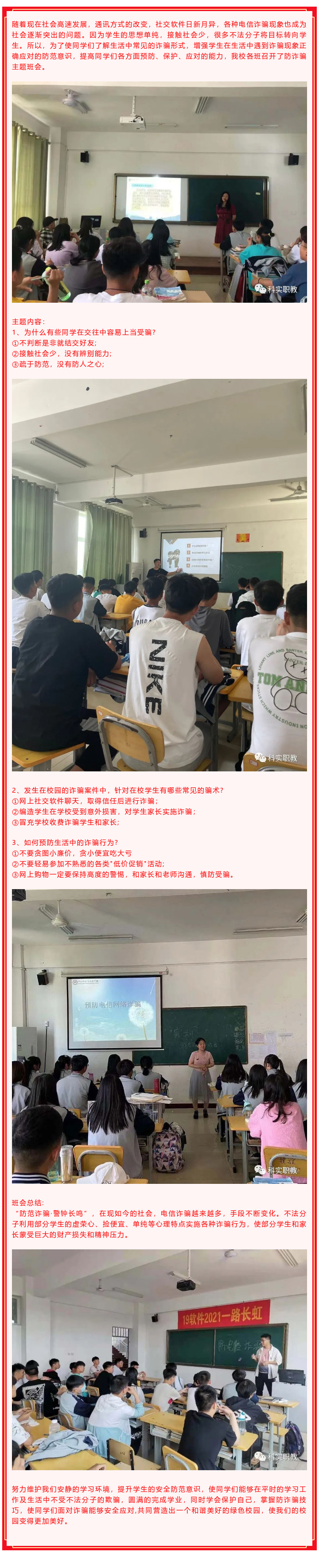 我校各班召開(kāi)防電信網(wǎng)絡(luò)詐騙教育主題班會(huì)