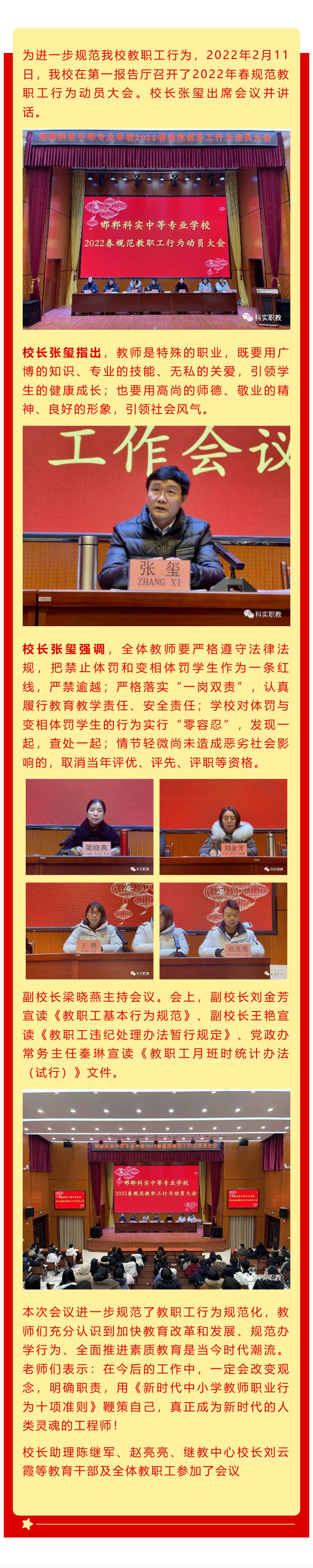 我校召開2022春規(guī)范教職工行為動員會