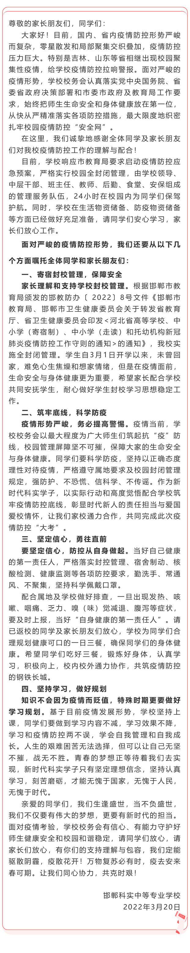 疫情期間致學(xué)生和家長的一封信