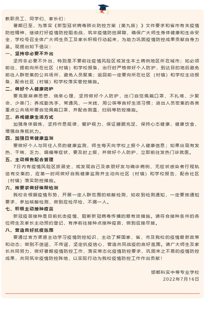 暑期疫情防控倡議書